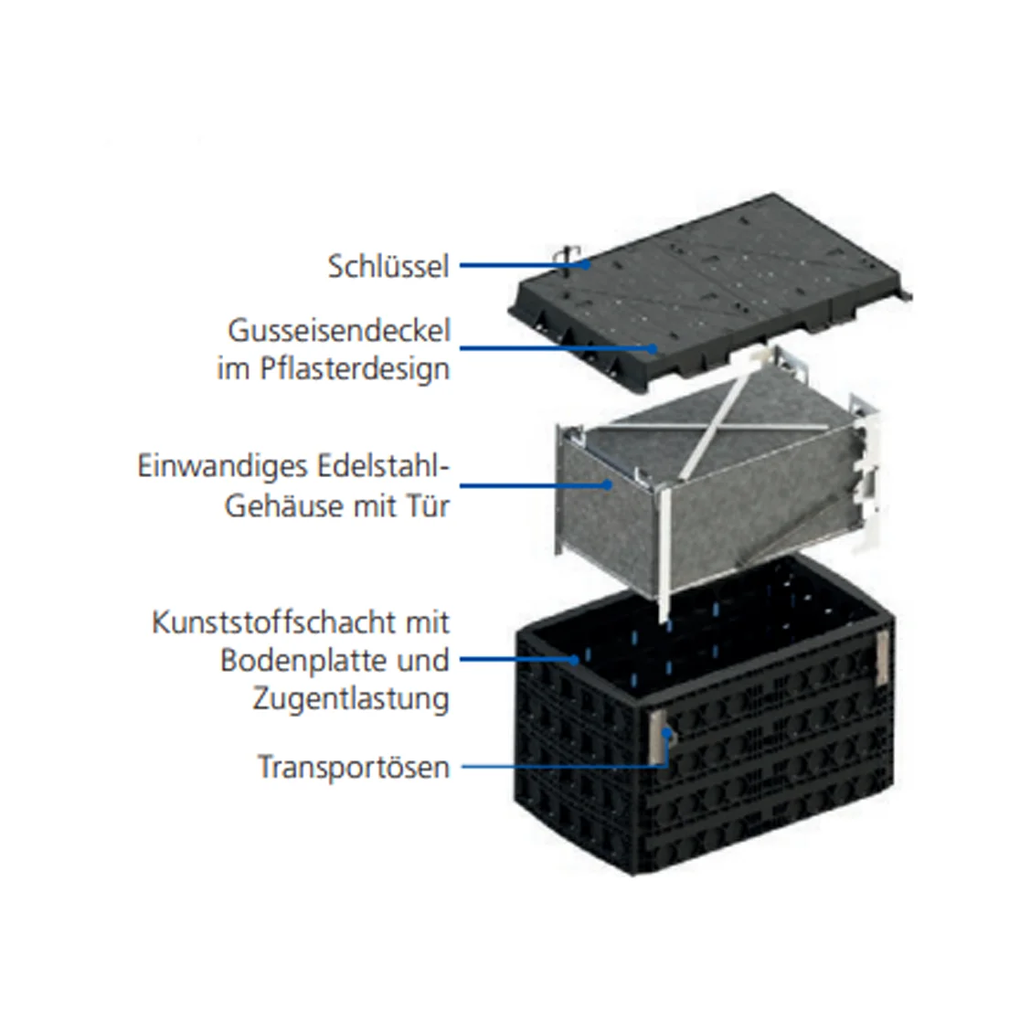 Material Abdeckung: Deckel: Betondeckel, auspflasterbar, Gusseisendeckel im Pflasterdesign