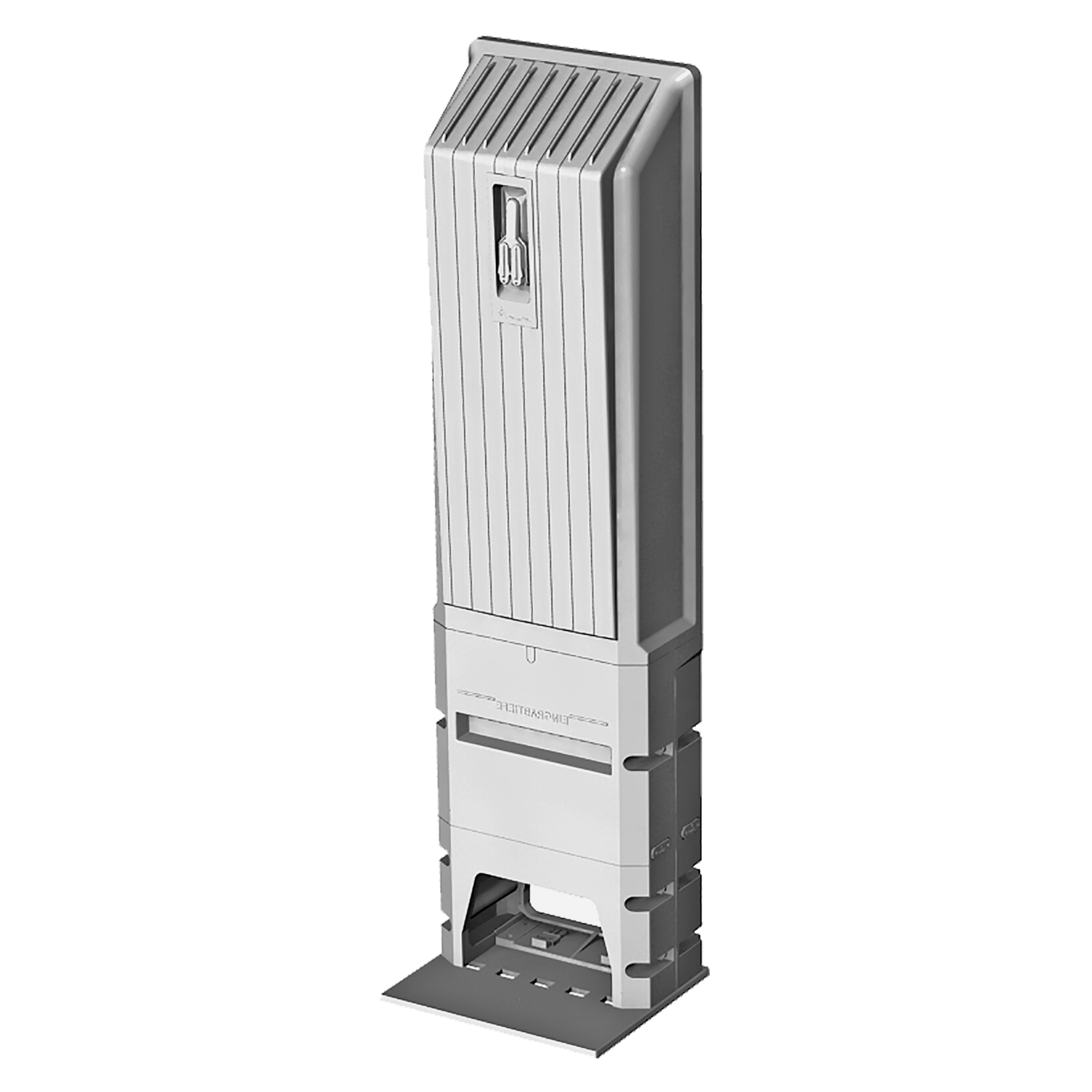 The outdoor enclosure EK430 Power Connection Column is versatile and serves both energy supply and traffic technology purposes. With a cover prepared for profile half cylinders or custom locks, it provides security and flexibility. UV and weather resistant, environmentally friendly, and recyclable, it meets the highest standards for modern power supply and is also prepared for use with an electromechanical locking system.
