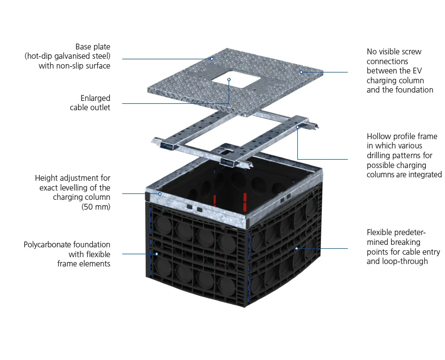 problem-free installation. The Langmatz polycarbonate foundation features mounts for the most common charging columns and wall box