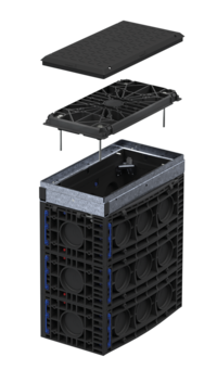 - Innovative manhole structure with 3D ribFrame Modular, resistant, and durable system solution that can be adapted to the specific location